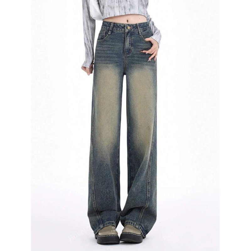 Celana Hitam Retro Highwaist Celana Jeans Wanita Loose Kekinian