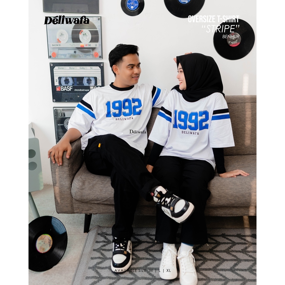 Deliwafa - Stripe 1992 | T-Shirt Oversize | Kaos Stripe | Baju Pria Wanita