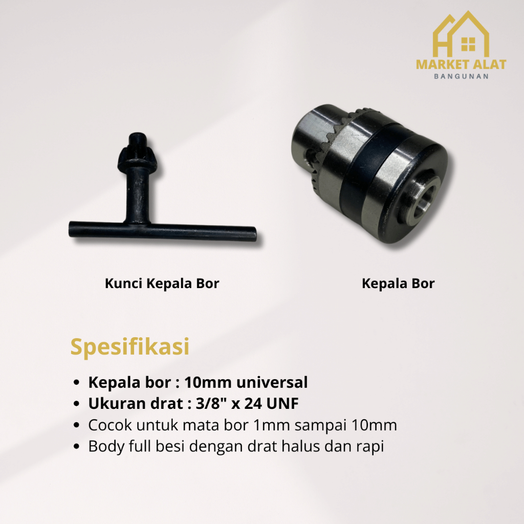 KEPALA MESIN BOR 10MM X 3/8 DENGAN KUNCI UNIVERSAL
