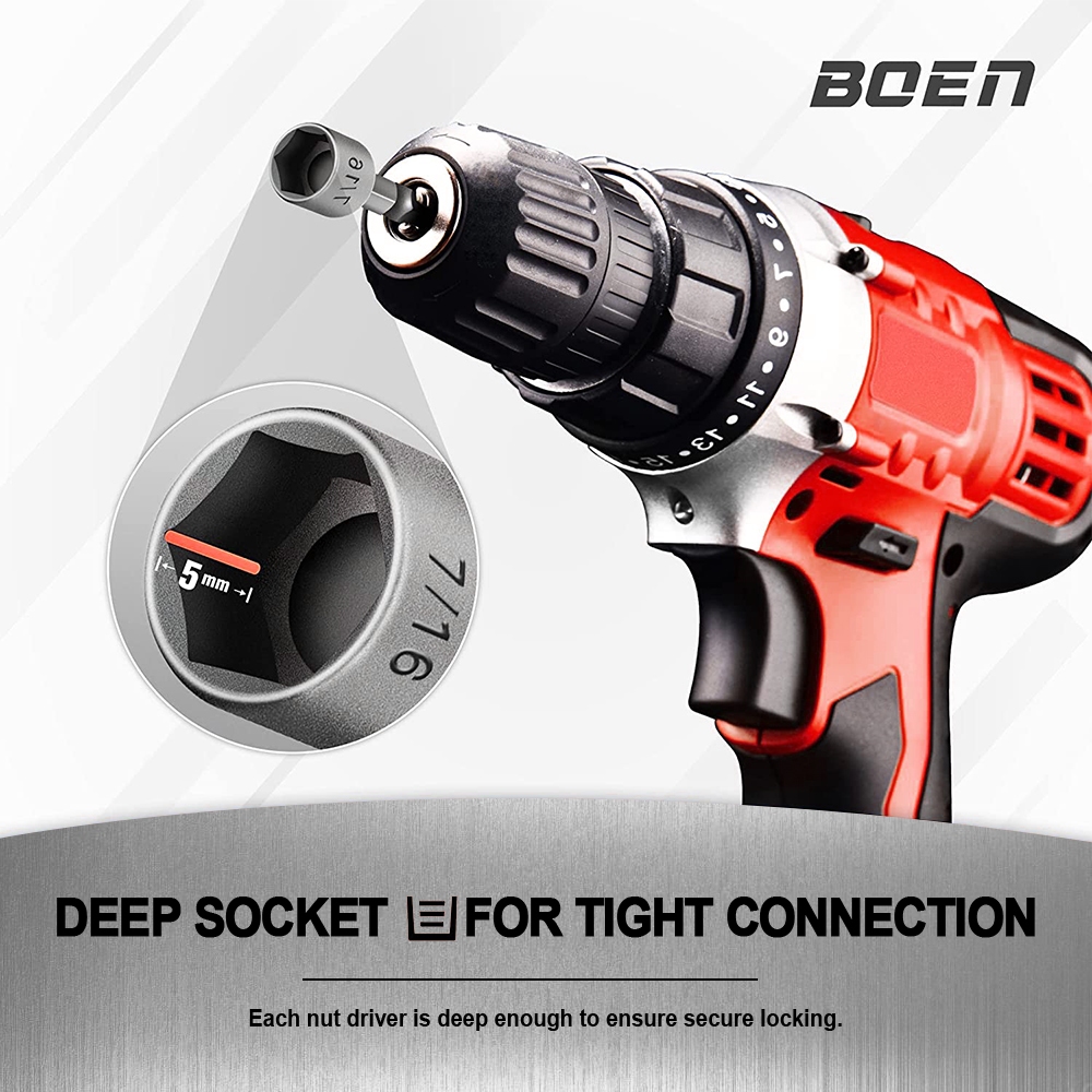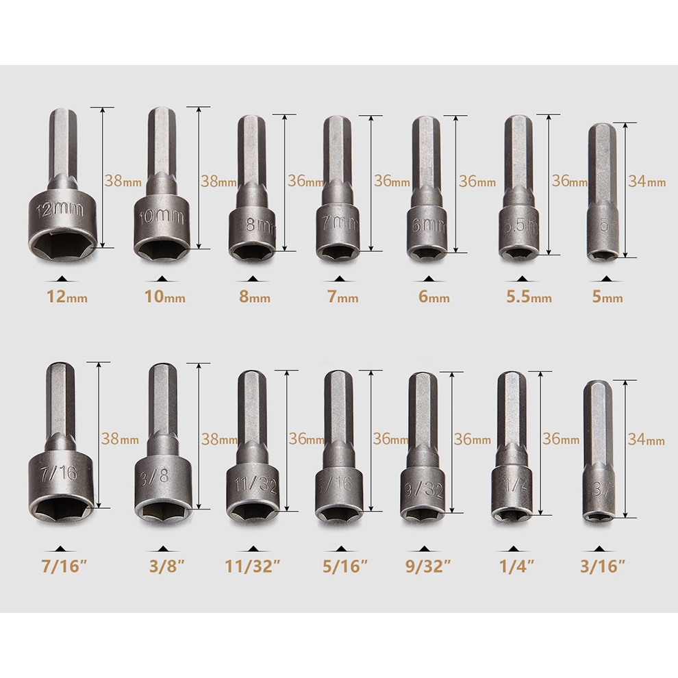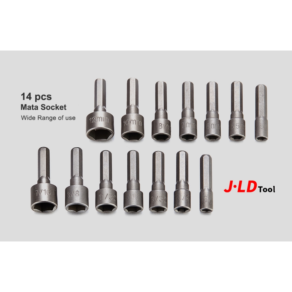 J.LD MATA SHOCK 14PCS HEX POWER NUT 5-5.5-6-7-8-10-12MM 3/16INCH 7/16INCH KUNCI SOCKET SET LENGKAP UNTUK IMPACT DRILL