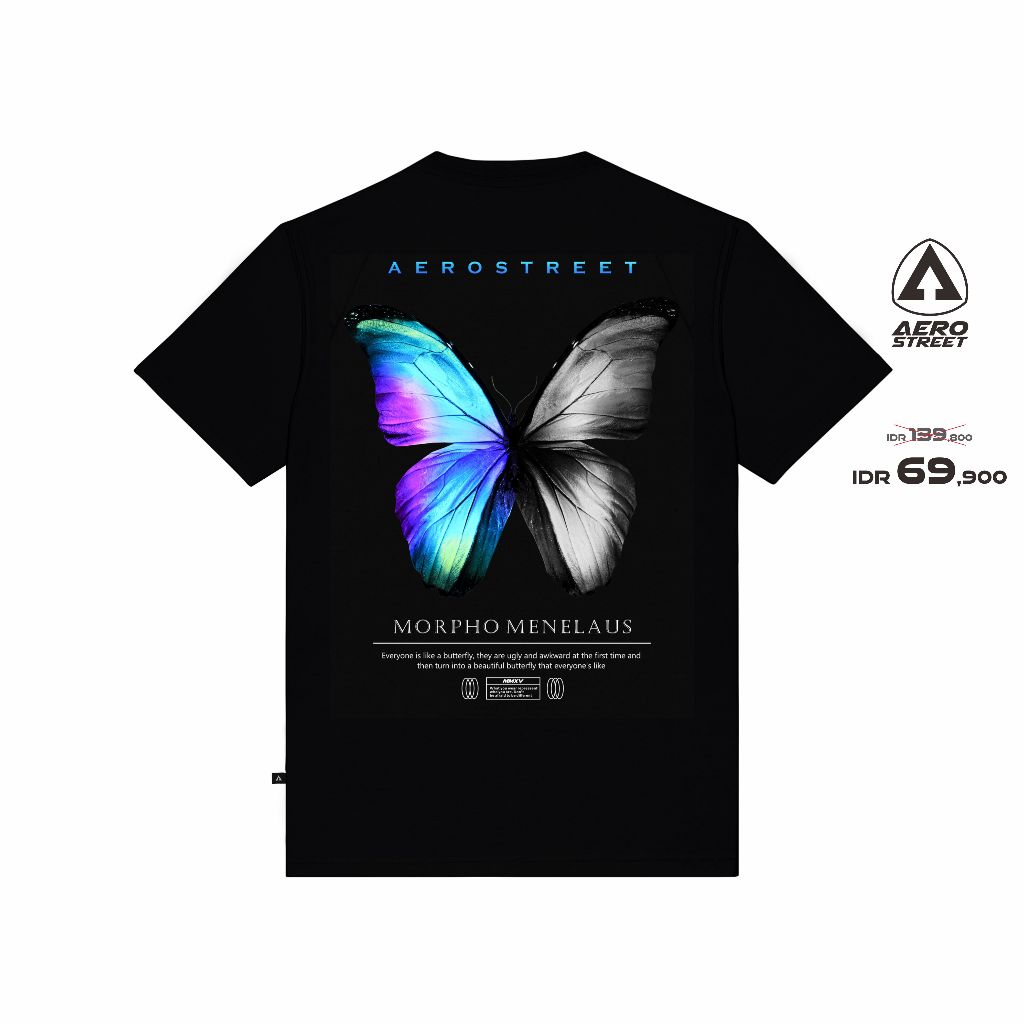Aerostreet T Shirt Morpho Menelaus Hitam Kaos T-Shirt AADAA