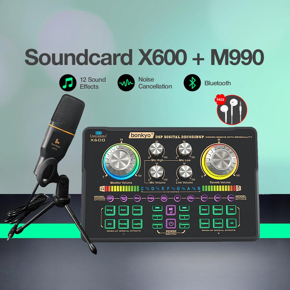 Bonkyo SoundCard X600+M990(free headset) Sound Card Peralatan siaran langsung komputerdan ponsel karaoke rekamanprofesional Laptop