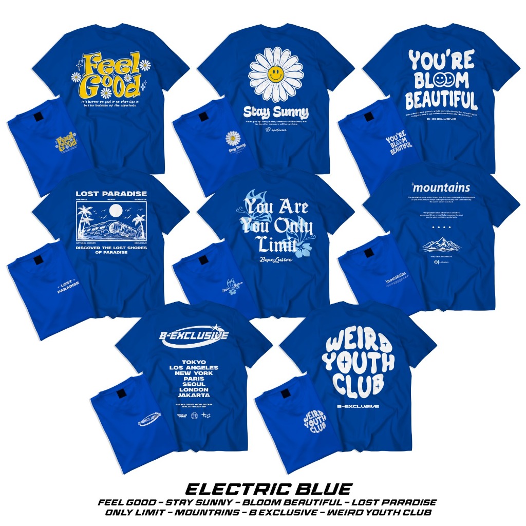 BL Baju Kaos T shirt T-shirt Tshirt Distro Katun Combed 24S Premium Pakaian Unisex Pria Wanita ELECTRIC BLUE FEEL GOOD, STAY SUNNY, BLOOM BEAUTIFUL...