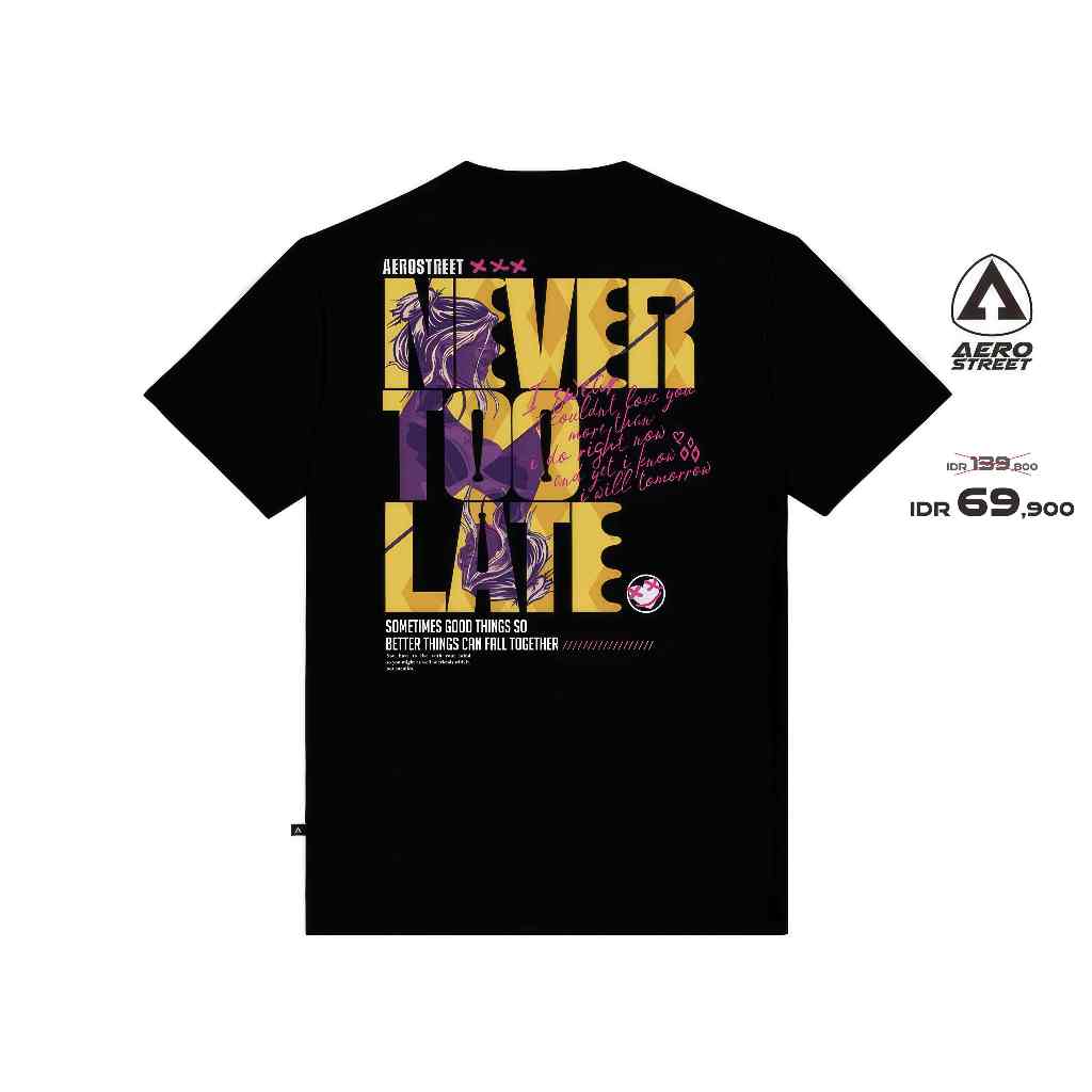 Aerostreet T Shirt Never To Late Hitam Kaos T-Shirt Tshirt AADAA