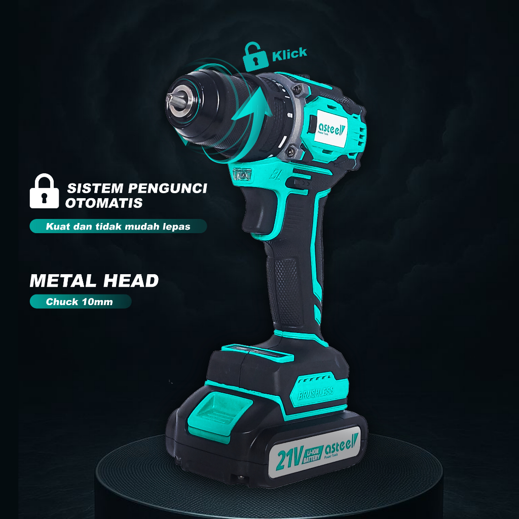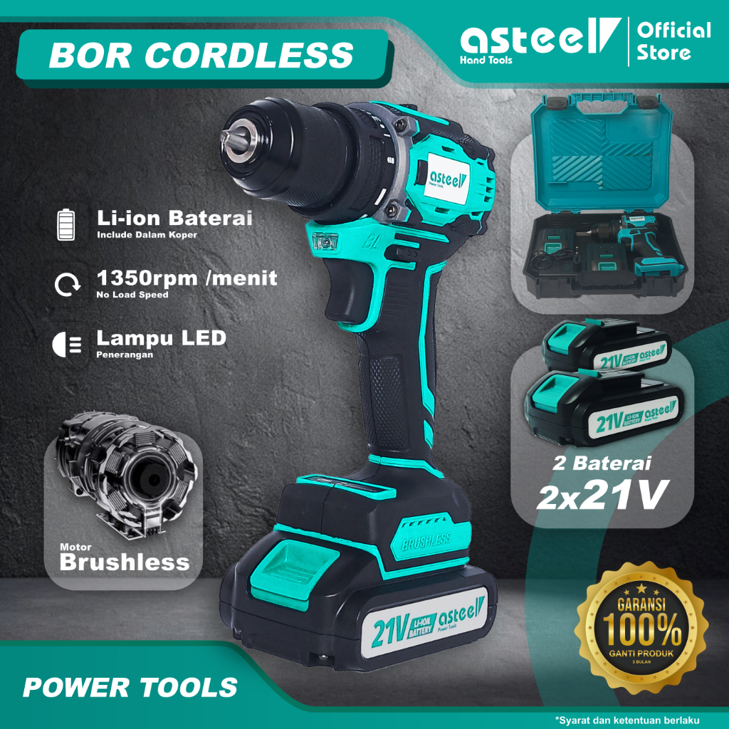 ASTEEL BRUSHLESS MESIN BOR CORDLESS DRILL ELEKTRIK BATERAI BATRE PORTABLE LISTRIK TANPA KABEL IMPACT TANGAN BETON