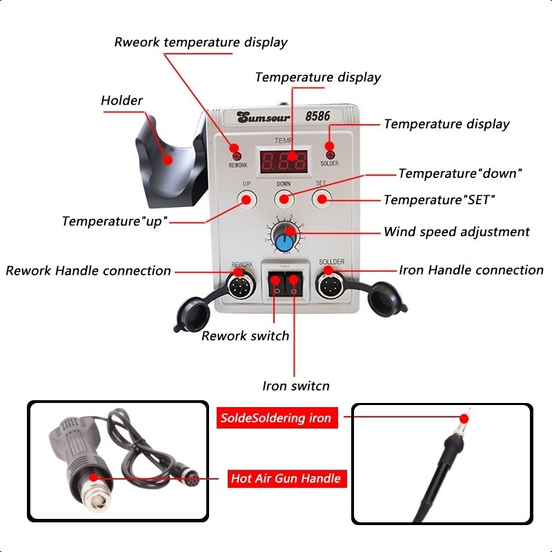 BUMIRUANG 700W 8586 2 IN 1 DIGITAL ESD HOT AIR GUN SOLDERING STATION WELDING SOLDER IRON UNTUK IC SMD DESOLDERING