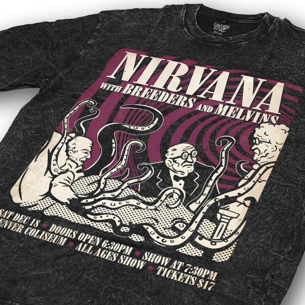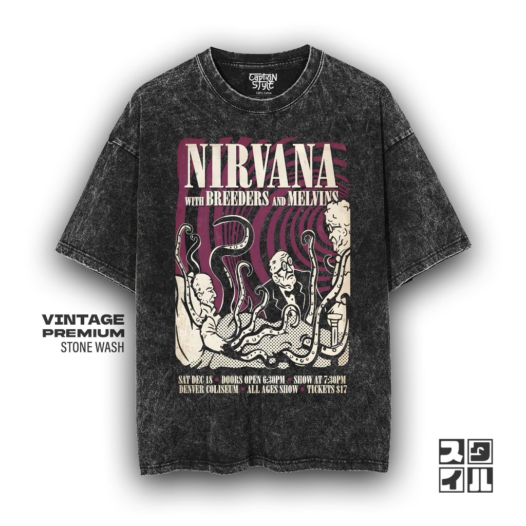 Kaos Oversize Stonewash Band Nirvana "MELVIN BREEDERS" | Kaos Washed | Kaos Vintage | Kaos Oversize Pria | Kaos Oversize Wanita | Caption Style