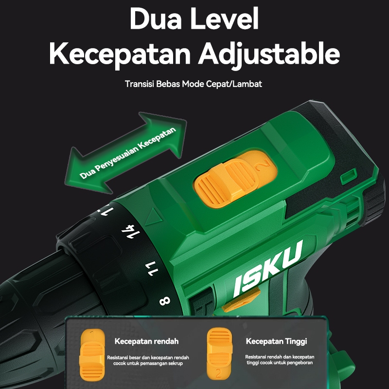 ISKU MOTOR TANPA SIKAT BOR LISTRIK 21V BOR IMPACT BATERAI CORDLESS UNTUK BESI TEMBOK BETON KAYU MESIN BOR BATERAI