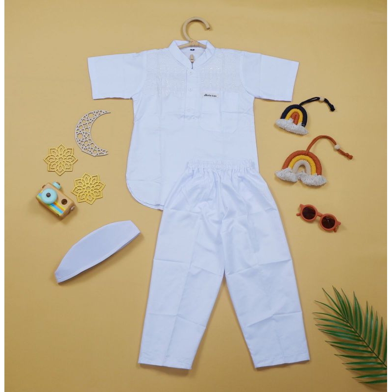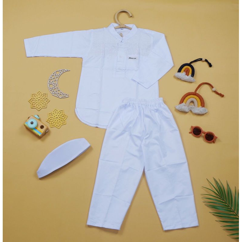Set koko putih anak laki-laki, Setelan koko pakistan ,baju manasik haji,fashion muslim anak putih bersih ,koko kurta dan fullkancing berkualitas,baju koko celana dan peci