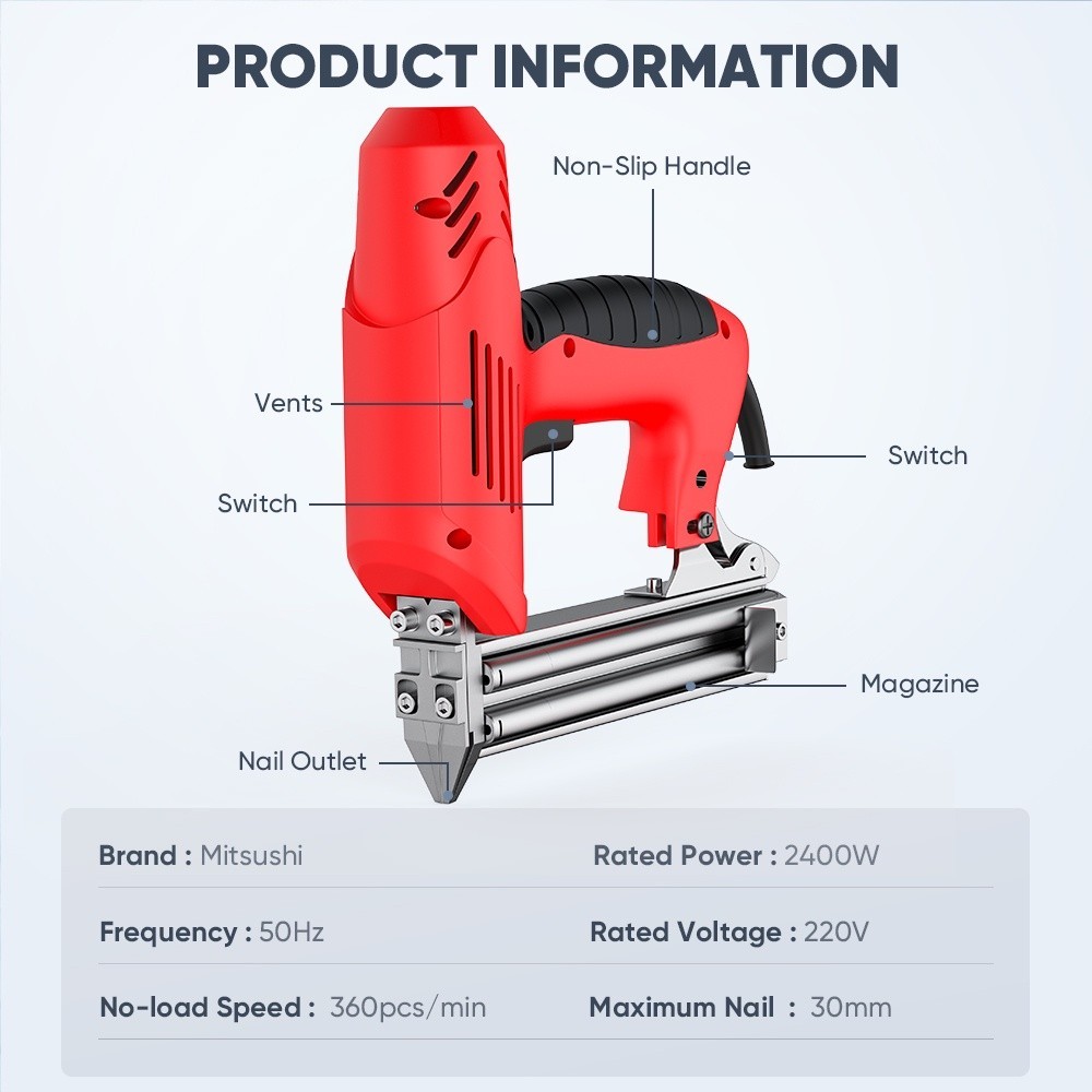 MITSUSHI ALAT PAKU TEMBAK ELEKTRIK AIR NAIL GUN F30 STEPLER LURUS MULTIFUNGSI PRAKTIS 2400W ELECTRIC NAIL GUN