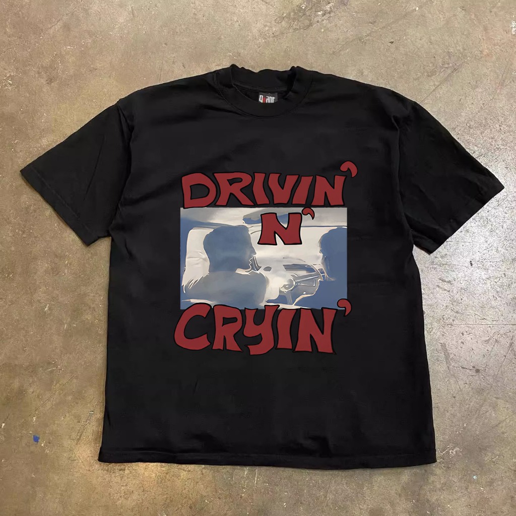 JJ.STORE Korea Style T-shirt Oversize DRIVIN CRYIN | Kaos Wanita Hitam | Kaos pria dan wanita