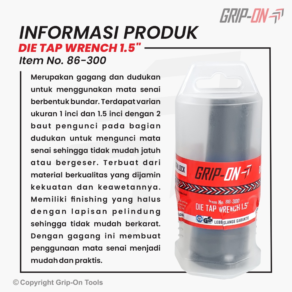 GRIP-ON DIE TAP WRENCH – GRIP-ON GAGANG SENAI – DUDUKAN MATA SENAI BUNDAR DERAT LUAR UKURAN 1,5”