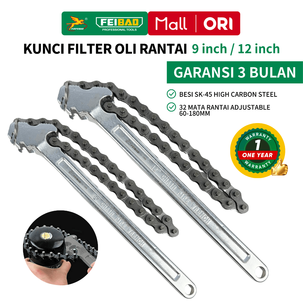 FEIBAO KUNCI PEMBUKA FILTER OLI RANTAI 9/12 INCH CHAIN OIL FILTER SPANNER 225/300MM F11-109