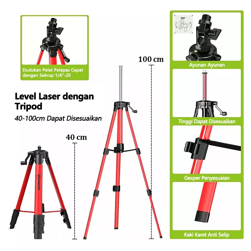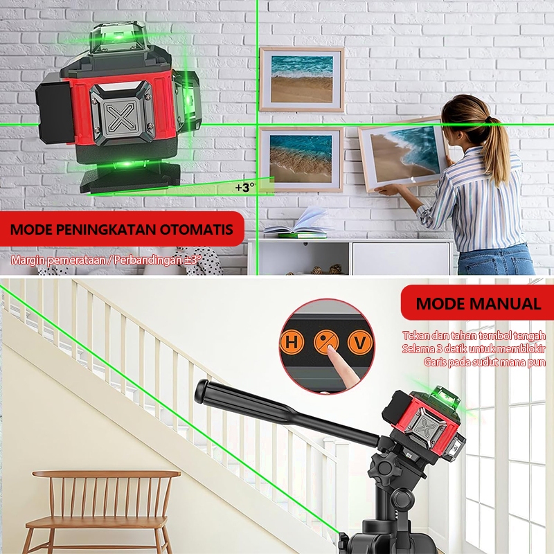 IRONHOOF LASER LEVEL 16 LINES MESIN SELF LEVELING LASER SINAR HIJAU DENGAN REMOT LASER SIKU WATERPASS DIGITAL