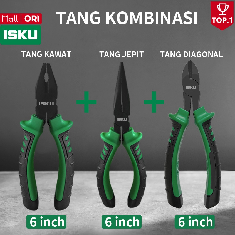 ISKU TANG COMBINASI KOMBINASI TANG KAWAT MULTIFUNGSI 6 INCH DAN TANG LANCIP 6 INCH DAN TANG POTONG 6 INCH PLIERS SET