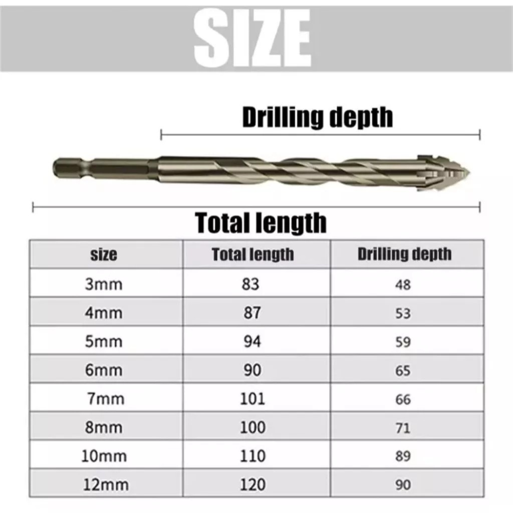 ALLIEUKA 7PCS 3-12MM MATA BOR BAJA TUNGSTEN SUPERKERAS UNTUK MELUBANGI KACA KERAMIK BETON