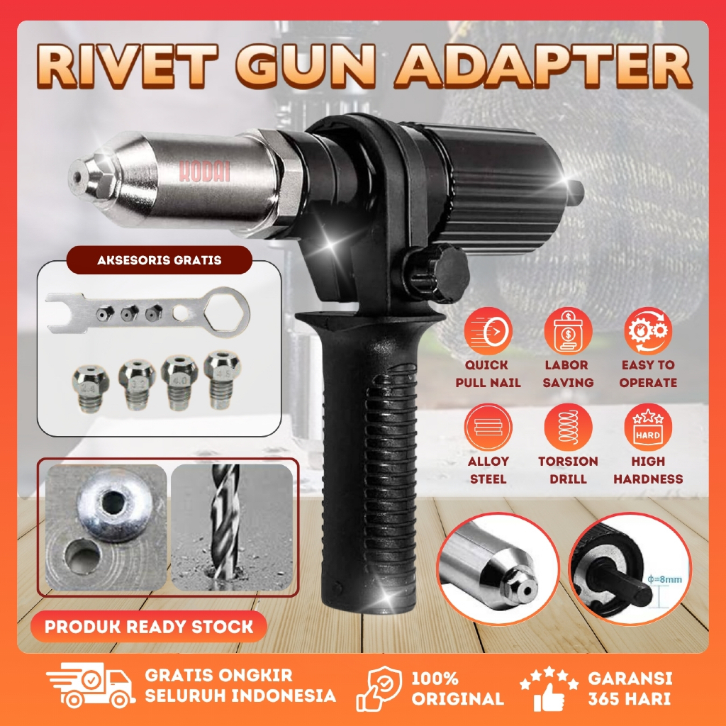 KODAI RIVET GUN ADAPTER TANG RIPET KONVERTER BOR SAMBUNG RIVET MANUAL ELEKTRIK HITAM