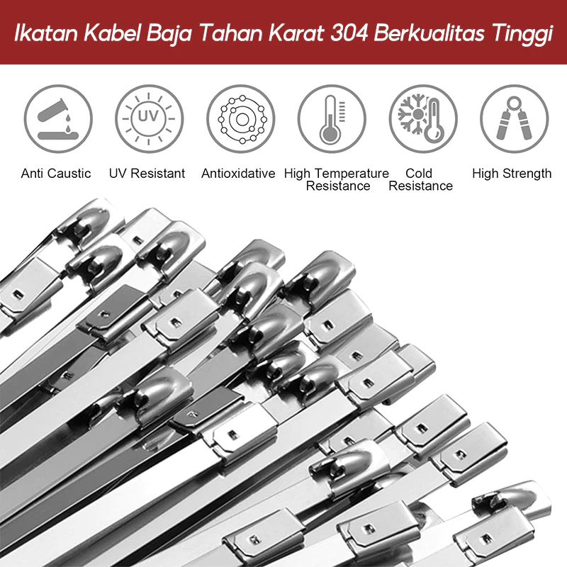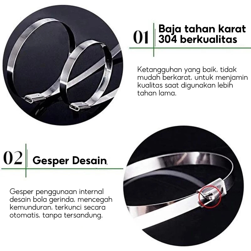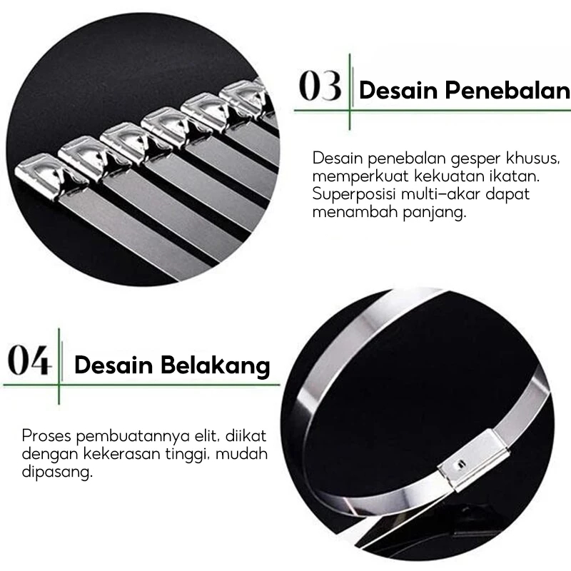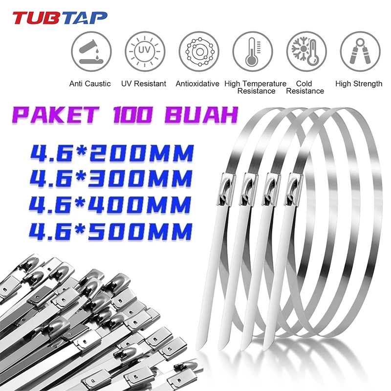 TUBTAP 100PCS STAINLESS CABLE TIES 4.6MM X 200MM 300MM 400MM 500MM KABEL TIS STAINLESS CABLE TIES MULTIFUNGSI STAINLESS