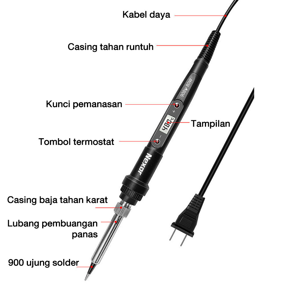 NEXOR SOLDER LISTRIK 80 WATT SUHU KONSTAN LISTRIK SUHU SETRIKA LISTRIK LCD TAMPILAN DIGITAL SOLDER