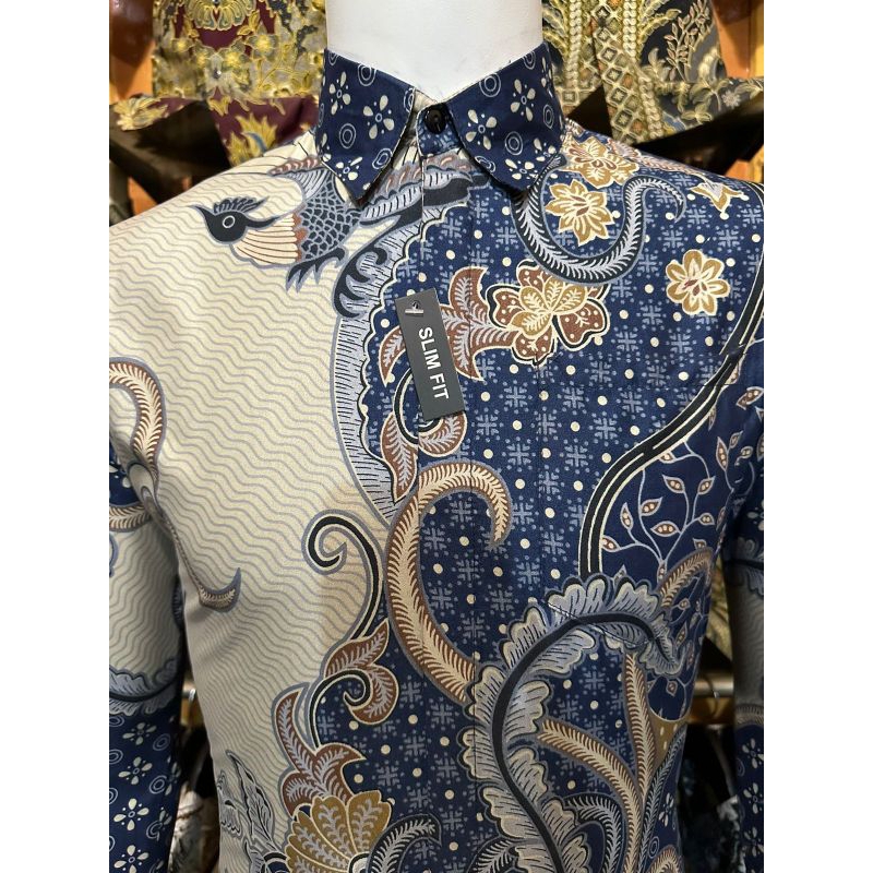 KEMEJA BATIK PRIA HITAM PREMIUM SLIMFIT LENGAN PANJANG BAHAN KATUN HALUS SRI LUMBUNG