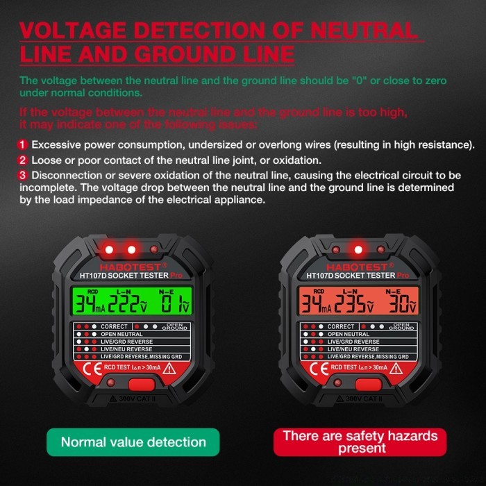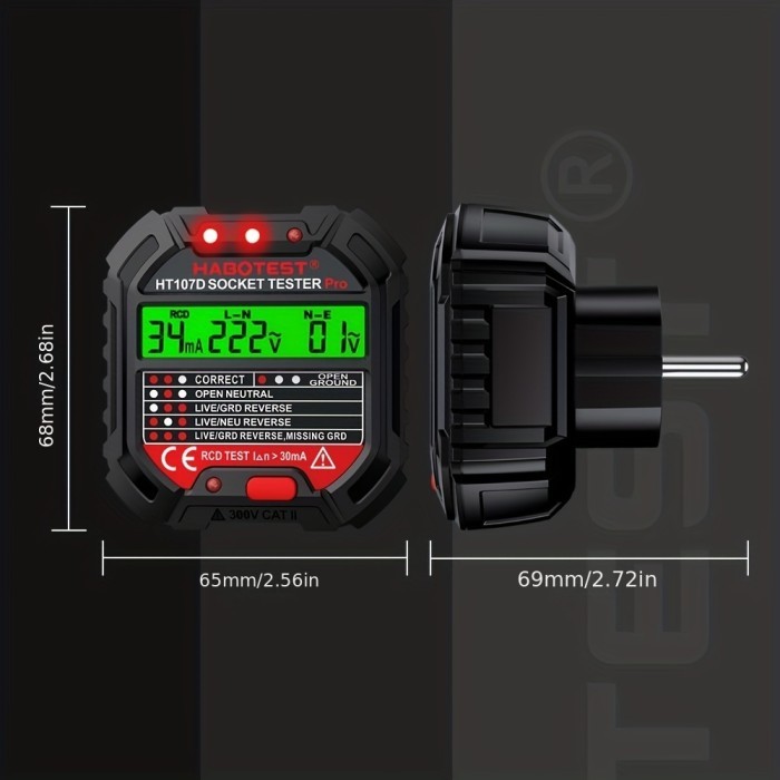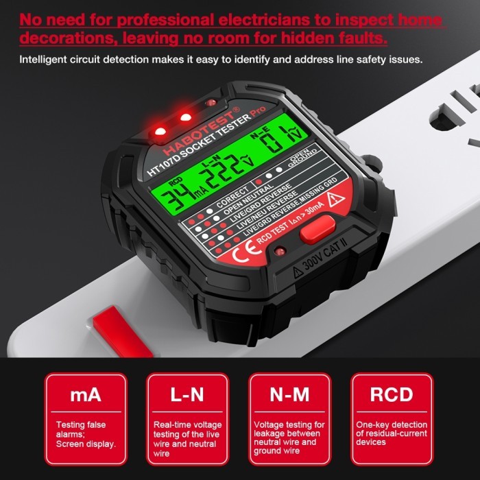 HABOTEST HT107D SOCKET TESTER DIGITAL GFCI SOCKET TESTER OTOMATIS 48V-250V WATT METER PENCARI KEBOCORAN LISTRIK