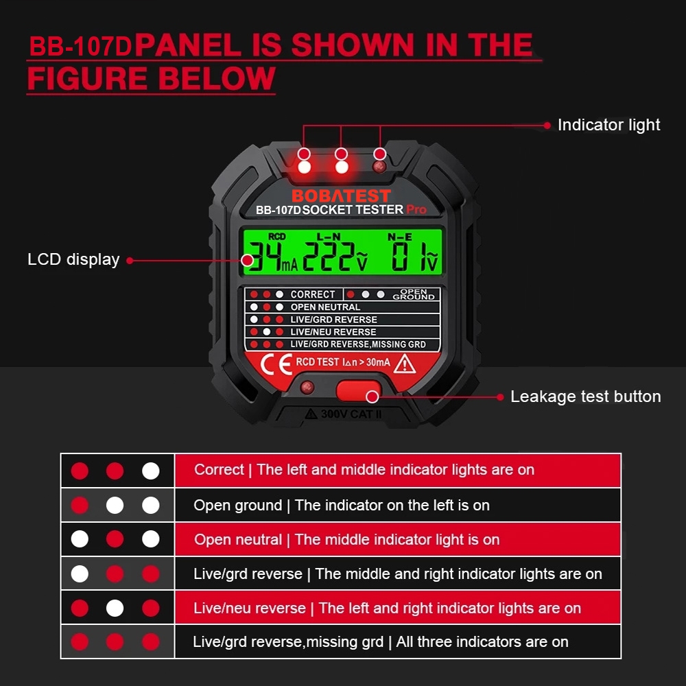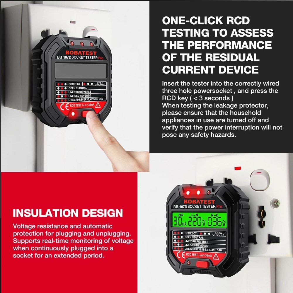 BOBATEST 107D SOCKET TESTER DIGITAL 48V-250V WATT METER SOCKET TESTER OTOMATIS SOCKET PENCARI KEBOCORAN LISTRIK