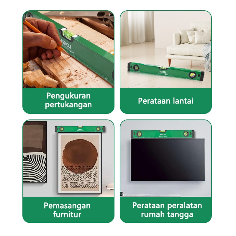 ISKU SPIRIT LEVEL WATERPASS MAGNET ALUMINIUM AKURAT 30/50/60/80/100CM PENGGARIS PENGUKUR HORIZONTAL AKURAT