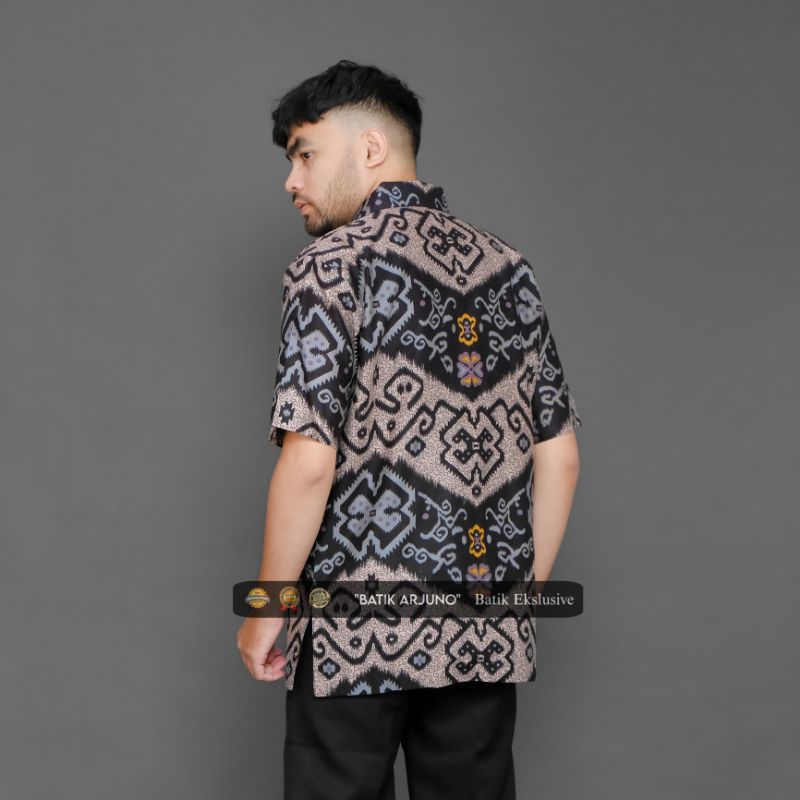 kemeja batik pria lapis furing lengan pendek batik pria ekslusive etnik hitam