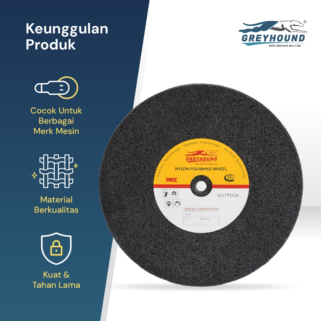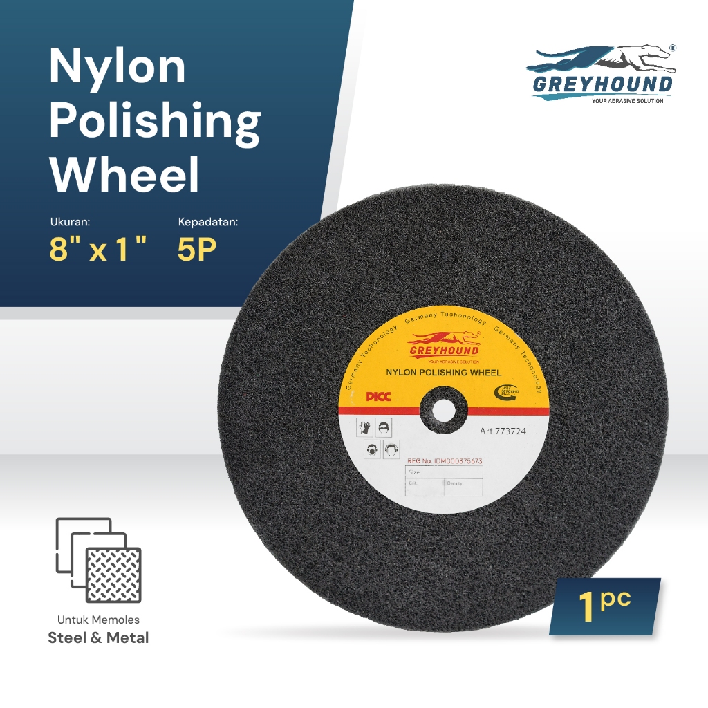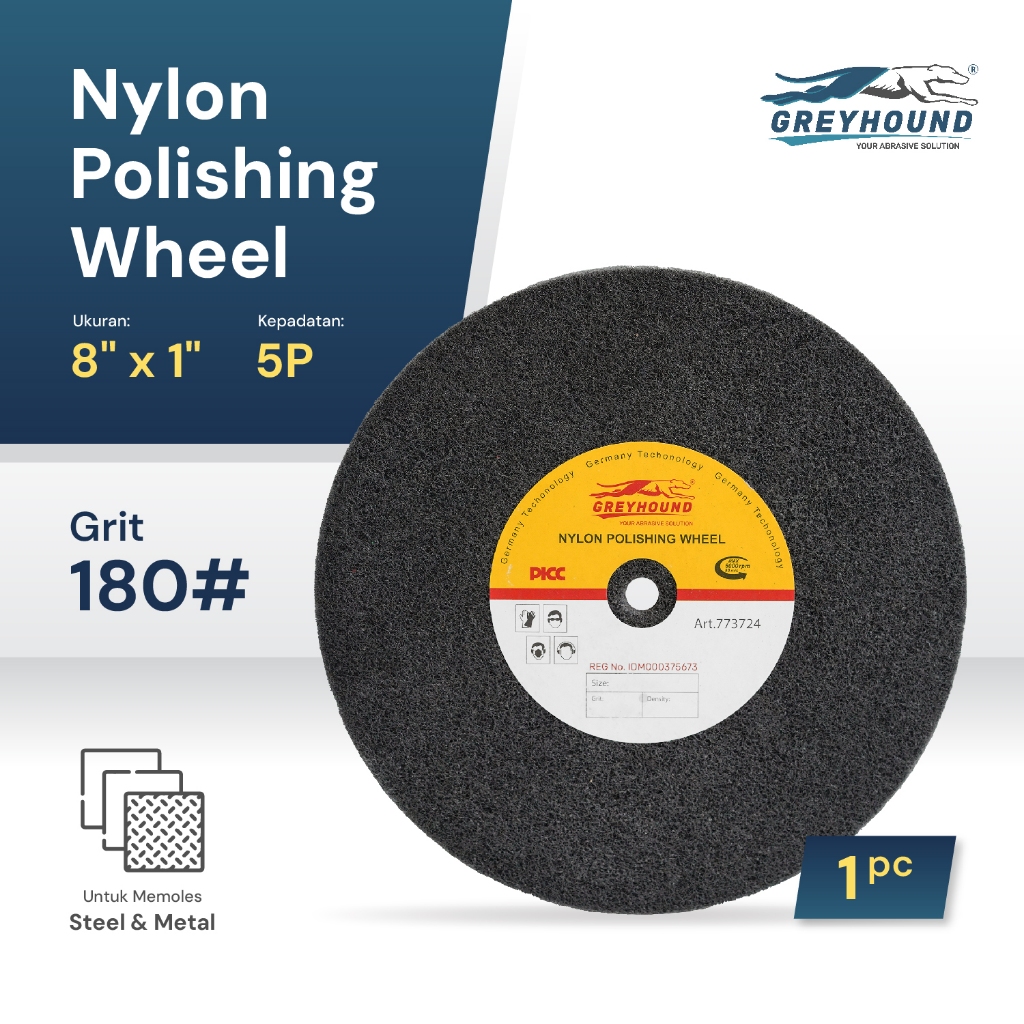GREYHOUND NYLON POLISHING WHEEL 8" X 1" 5P & 7P GRIT 180# 240#
