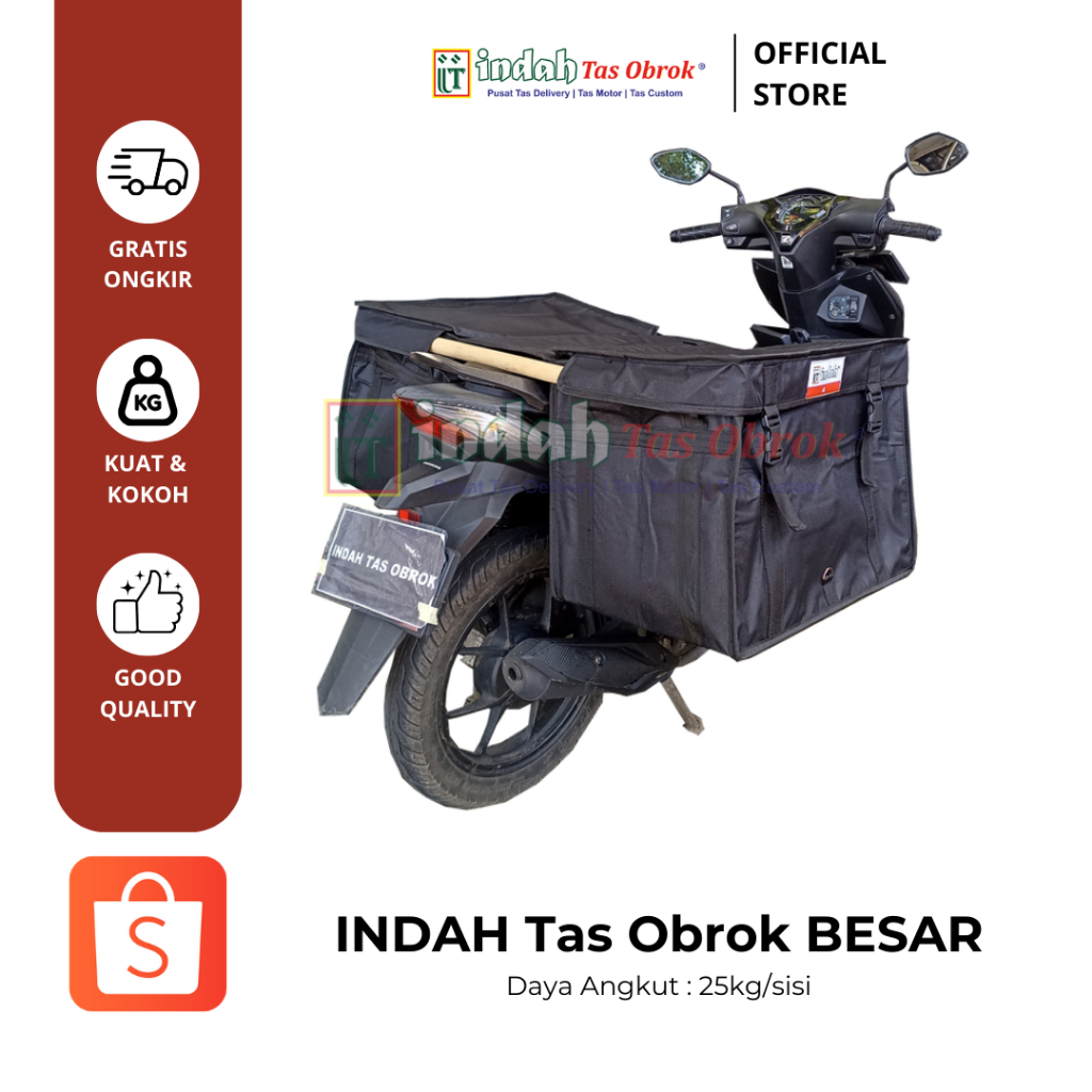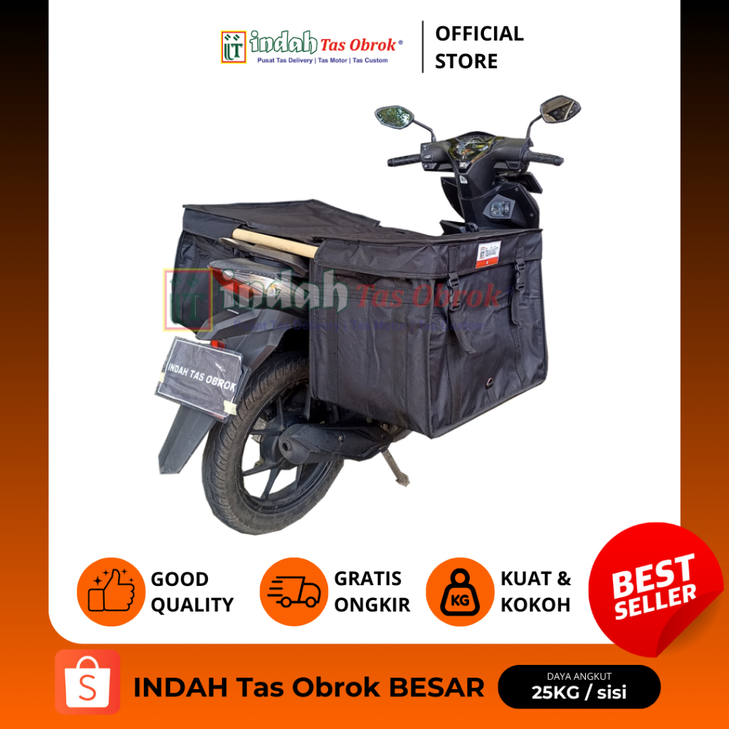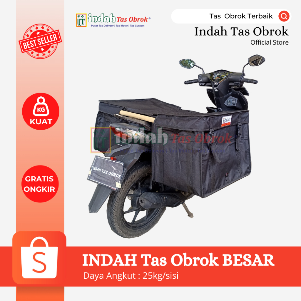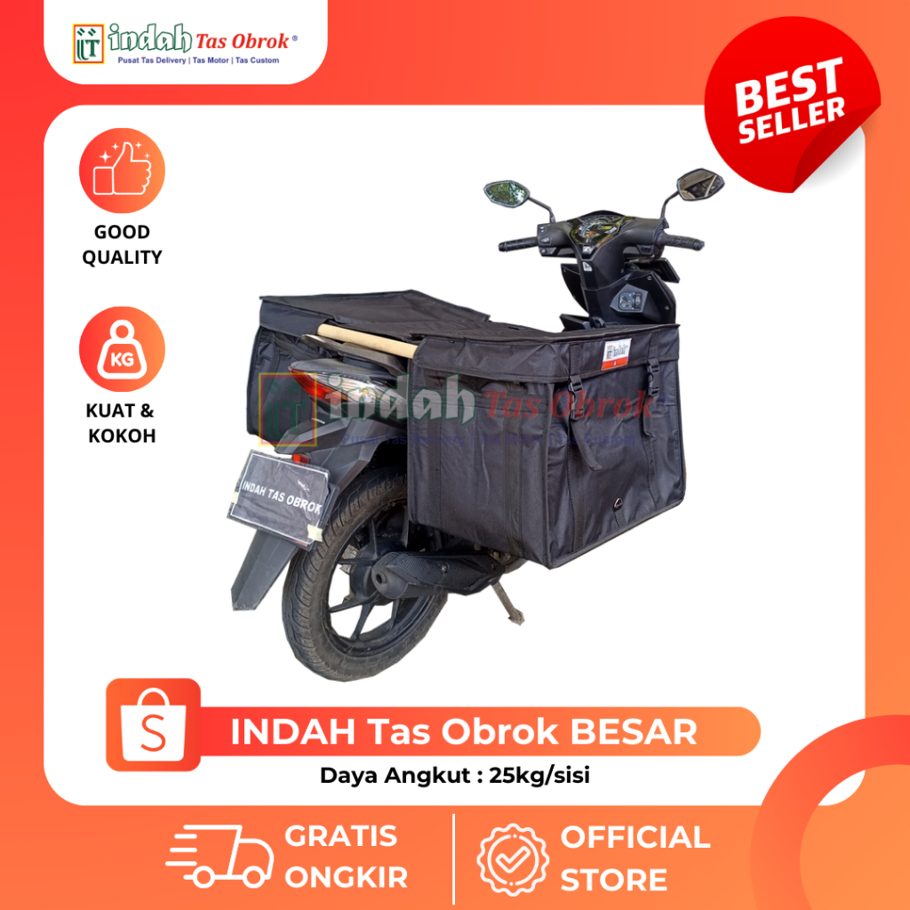 INDAH Tas Obrok - Tas Pos Motor Besar Hitam Kuat Tas Kurir Tas Obrok Motor
