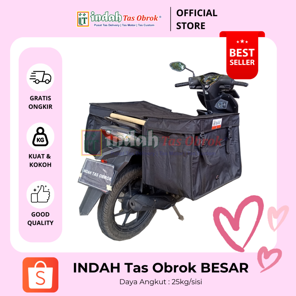 INDAH Tas Obrok - Tas Pos Motor Besar Hitam Kuat Tas Kurir Tas Obrok Motor
