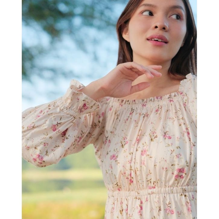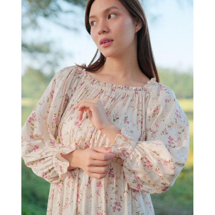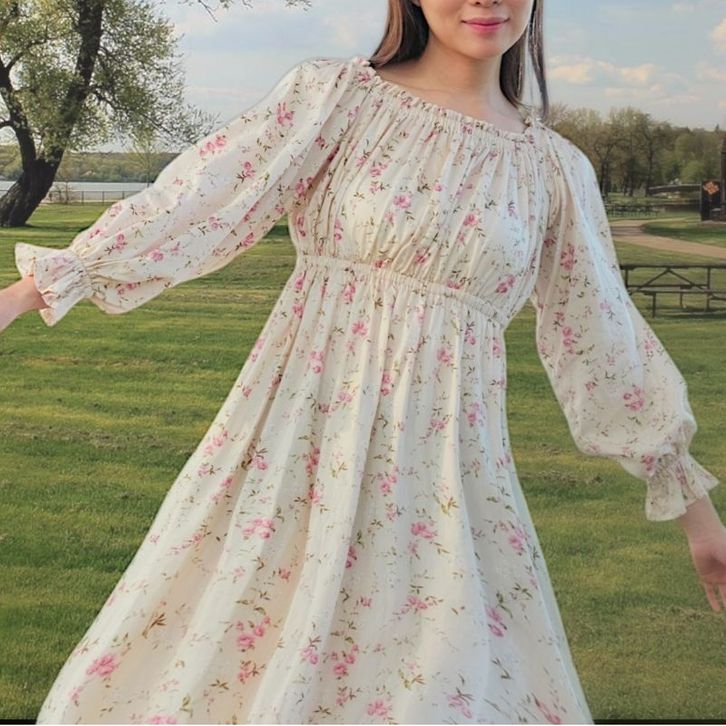 flora long vintage square neck dress korean style hijab cottagecore dress mori aesthetic dress floral vintage dress