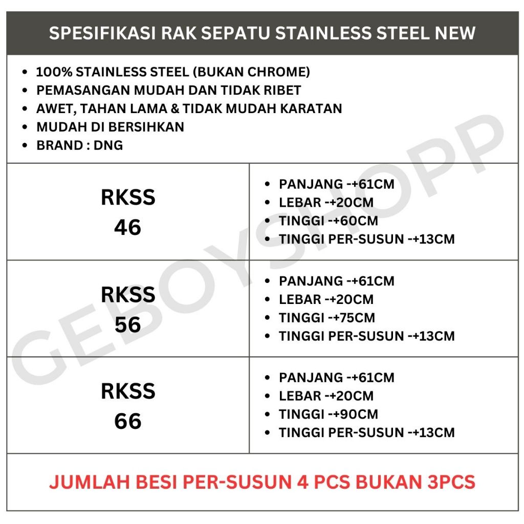 Rak Sepatu Stainless Steel / Rak Penyimpanan Sepatu 100% Stainless Steel