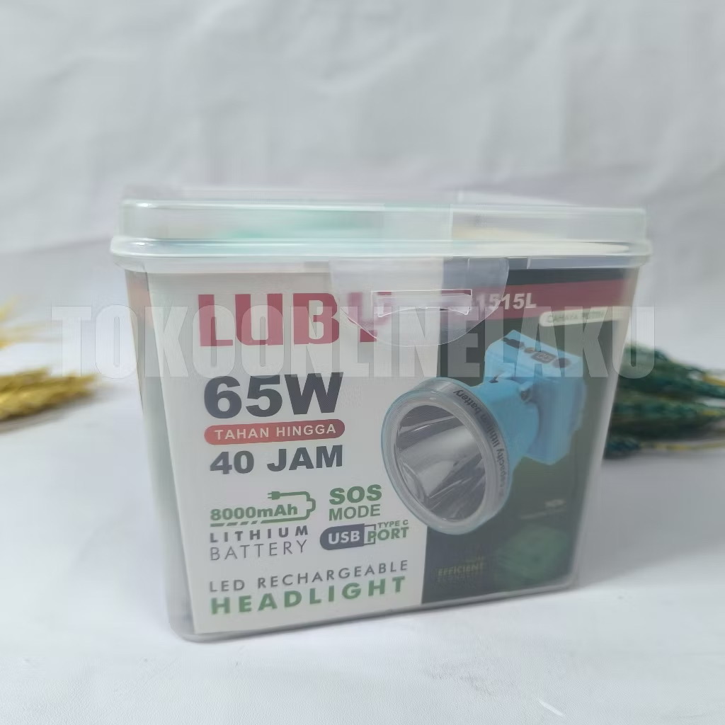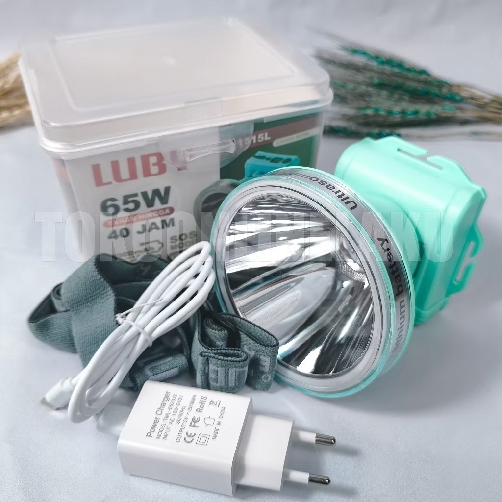 Senter Kepala Outdoor Luby L-1515 65W Baterai Lithium 8000mAh Tahan Hingga 40 Jam Cahaya Putih