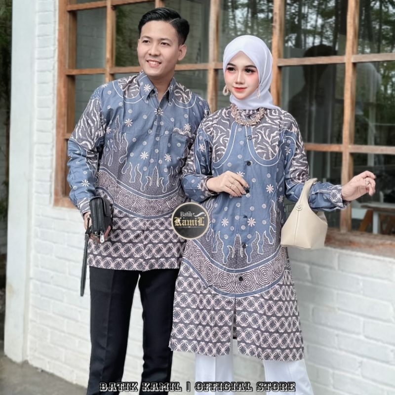 Batik Tunik Couple Modern Set Pakaian Couple Kemeja Batik Pria Panjang Atasan Batik Couple Terbaru