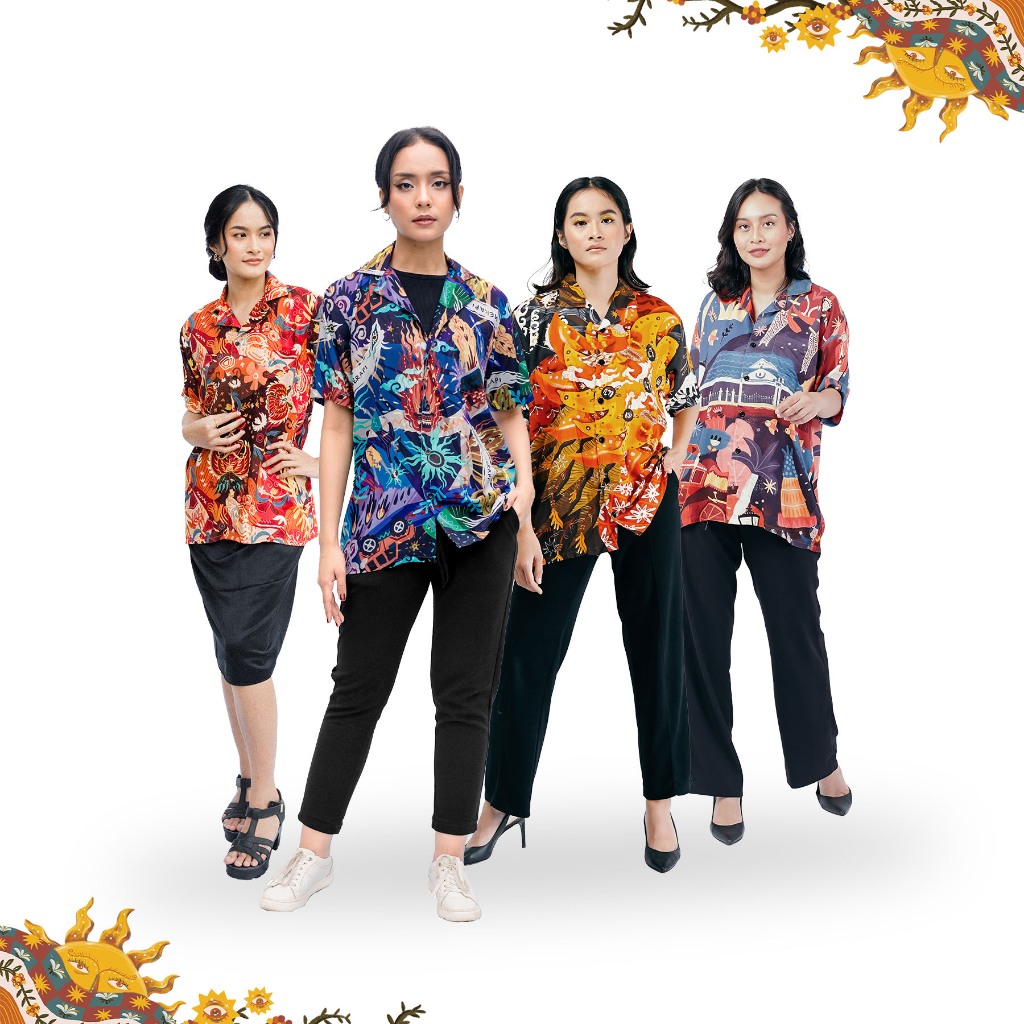 ARTINE - Kemeja Print, Atasan Batik Wanita dan Pria, Baju Katun Rayon Premium,Terlaris, Kemeja Batik