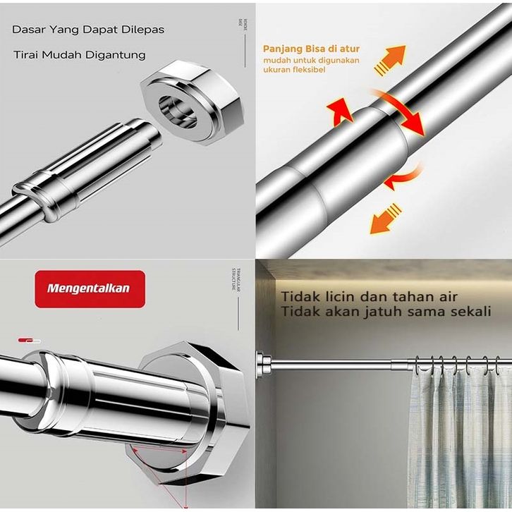 Stainless Steel Tiang Gorden Batang Tirai Fleksible Tanpa Paku Gantungan Serbaguna Tongkat pipa ajaib/Tiang kolong dapur