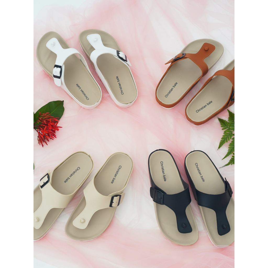 [Mall] Sandal Wanita Cewek Sendal Dewasa Elegan Korea Kekinian Murah Original Slide Slop Kulit Sintetis Christian