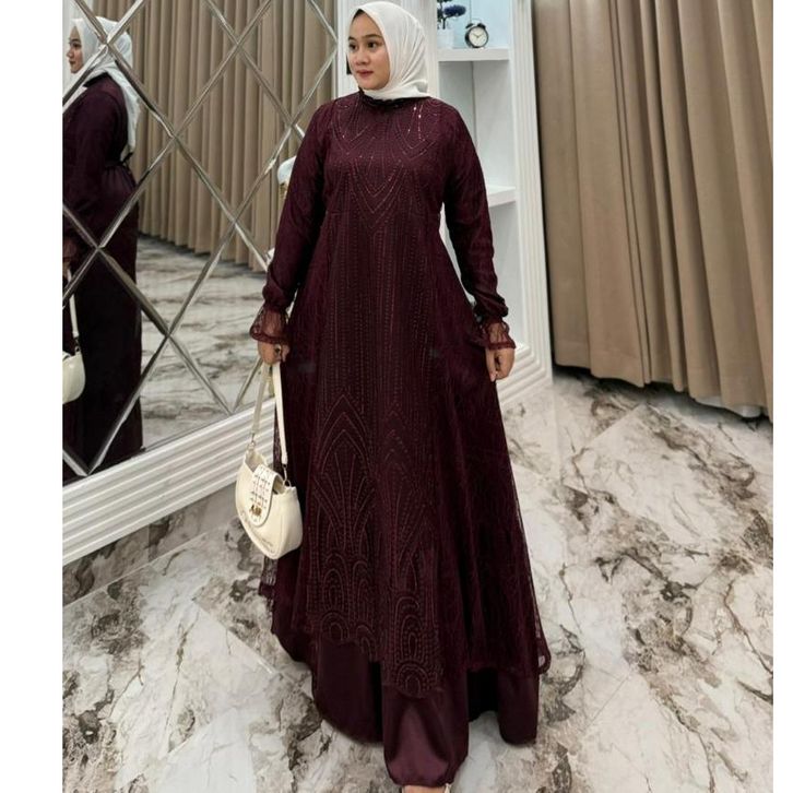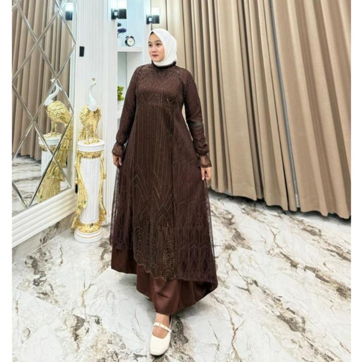 baju kondangan wanita novita dress silk roberto mix tile spanggel premium mewah kekinian warna viral