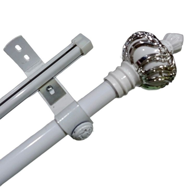 Tiang Gorden Double Set Pipa Kristal Bracket Besi Tebal 2mm Lengkap Rel Vitrase Cup Princes Full Set