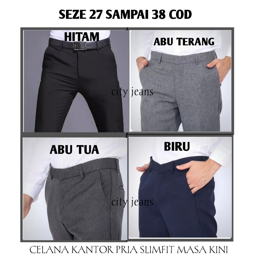 CELANA BAHAN | KERJA | FORMAL | KANTOR | PANJANG | HITAM | DASAR PRIA SLIMFIT / Celana Pria