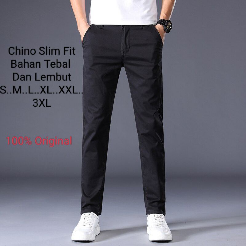 Celana Chino Panjang Pria Slimfit Cowok Kerjaharian Santai Casual Formal Deniim