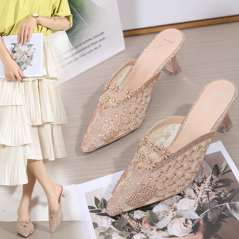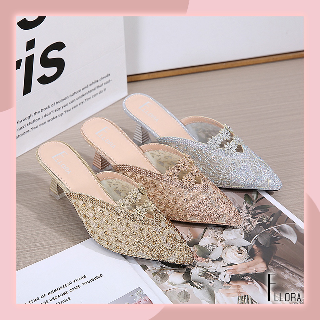 Sandal Heels Wanita Pesta Mules Import 7cm