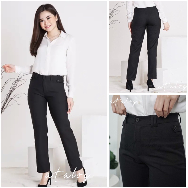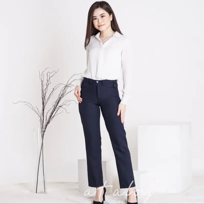 Atalog - Celana bahan Kerja Wanita Highwaist Slimfit Strech | Luna Pants