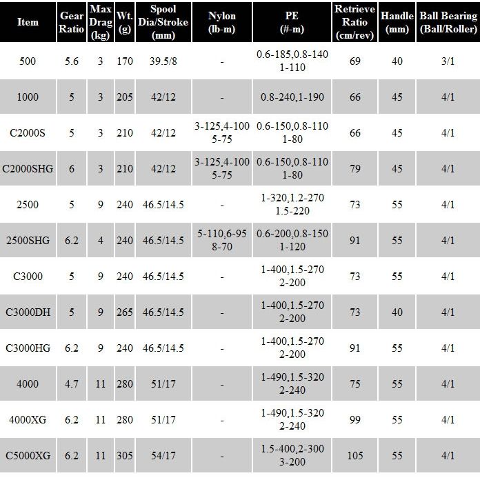1000, 2500, 2500SHG, 4000, 4000XG, 500, C2000S, C2000SHG, C3000, C3000DH, C3000HG, C5000XG