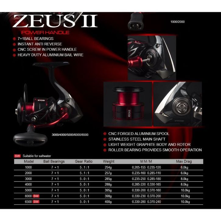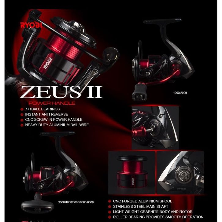 reel pancing ryobi zeus II hp merah red pilihan 1000 2000 3000 4000 5000 power handel
