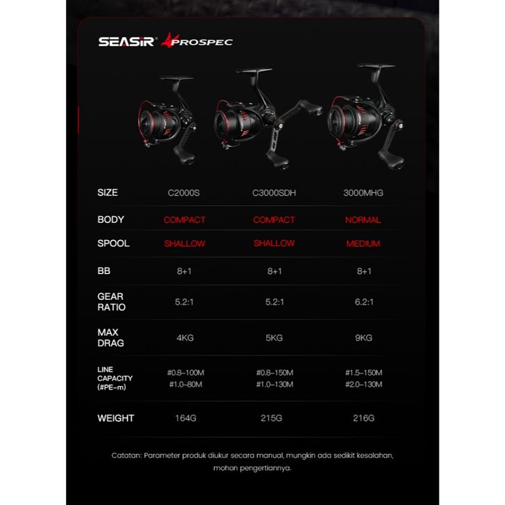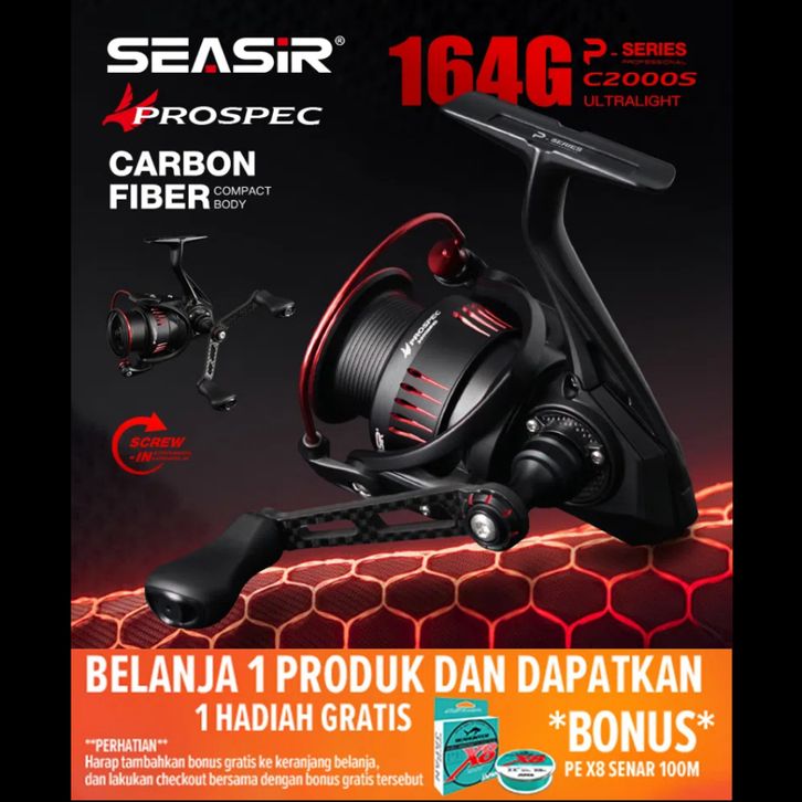 Reel Pancing Power Handle P-Series Reel Spinning Putar, Carbon Fiber Body, Ultralight Carbon Wa OFFICIAL SEASIR PROSPEC
