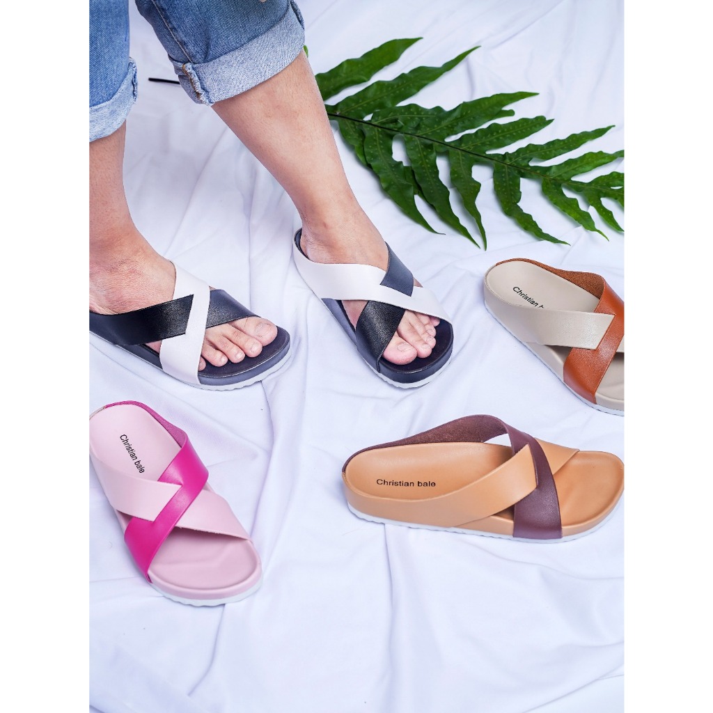 [Mall] Sandal Wanita Cewek Sendal Cewek Dewasa Elegan Korea Kekinian Murah Original Slop Kulit Sintetis Christian