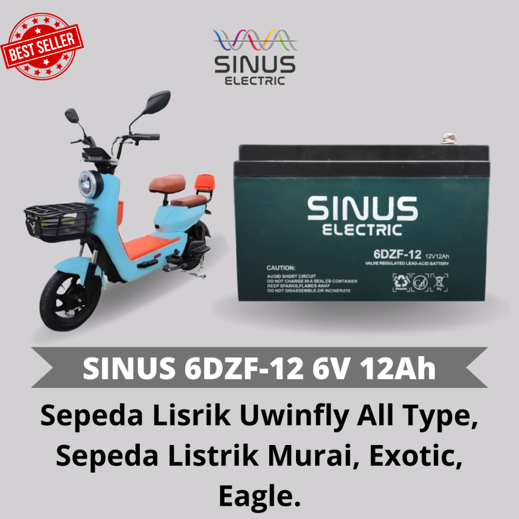 Aki Kering 12V 12Ah Untuk Sepeda Listrik Uwinfly, Murai, Exotic, Eagle 6DZF12 VRLA SINUS