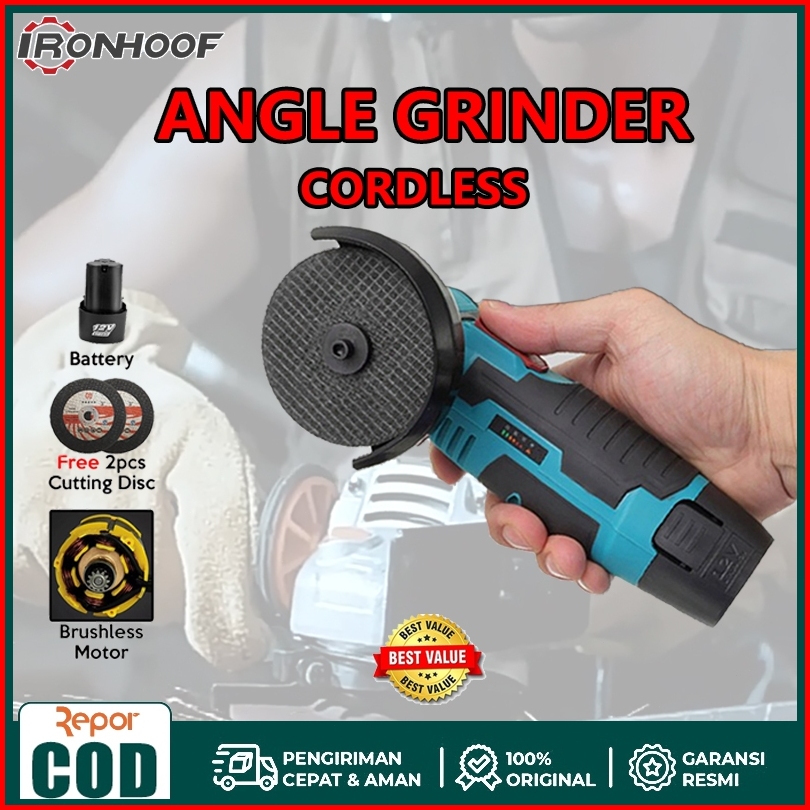 Ironhoof Mesin Gerinda Tangan Angle Grinder 12v Mesin Gurinda Ryu 3inch Mini Baterai Mesin Gurinda Ryu Brushless Recharg